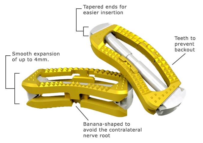 The XTP interbody expands in height as the endblocks are pulled in, giving controlled lift and stability throughout expansion