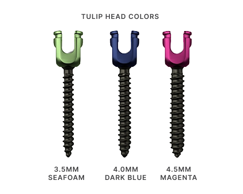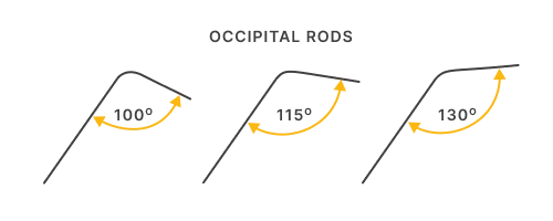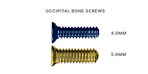 - Screws with a uniform cortical thread to maximize purchase in the occipital bone