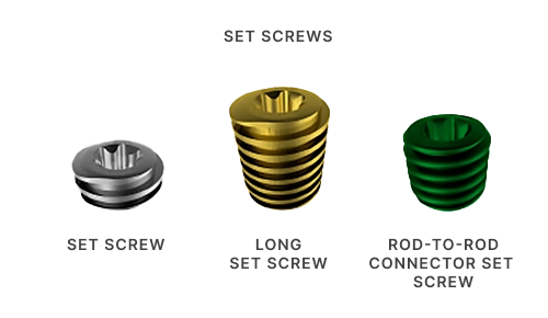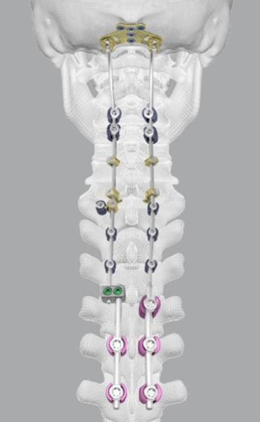 - One set screw is used through the majority of the system (occipital plate, cervical hooks, cervical and upper thoracic screws, and lateral offset connectors)